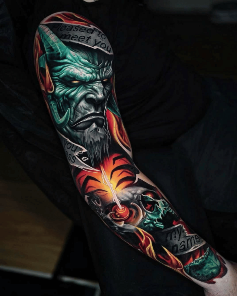 Farbtattoos in Frankfurt. Joa begeistert mit kreativen Designs und lebendigen Fullcolor Tattoos. Seine einzigartigen Arbeiten vereinen Vielfalt und Präzision.